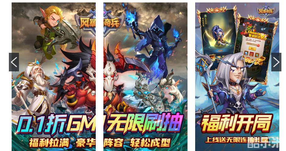 《风暴奇兵》0.1折版强势来袭!所以充值档位,直购礼包通通0.1折!佛系放置,不肝不氪,上线赠送88888钻石、VIP10、无限连抽礼盒,强力英雄轻松抽取,闯关掉落真充卡盲盒,升级再送万元真充豪礼,闯关还掉落真充卡盲盒,零氪也能资源爆仓。重现魔兽经典角色,在游戏中你将拥有强力的英雄伴随,多样的种族和海量的世界探险,快来组建专属于的你奇兵小队吧!