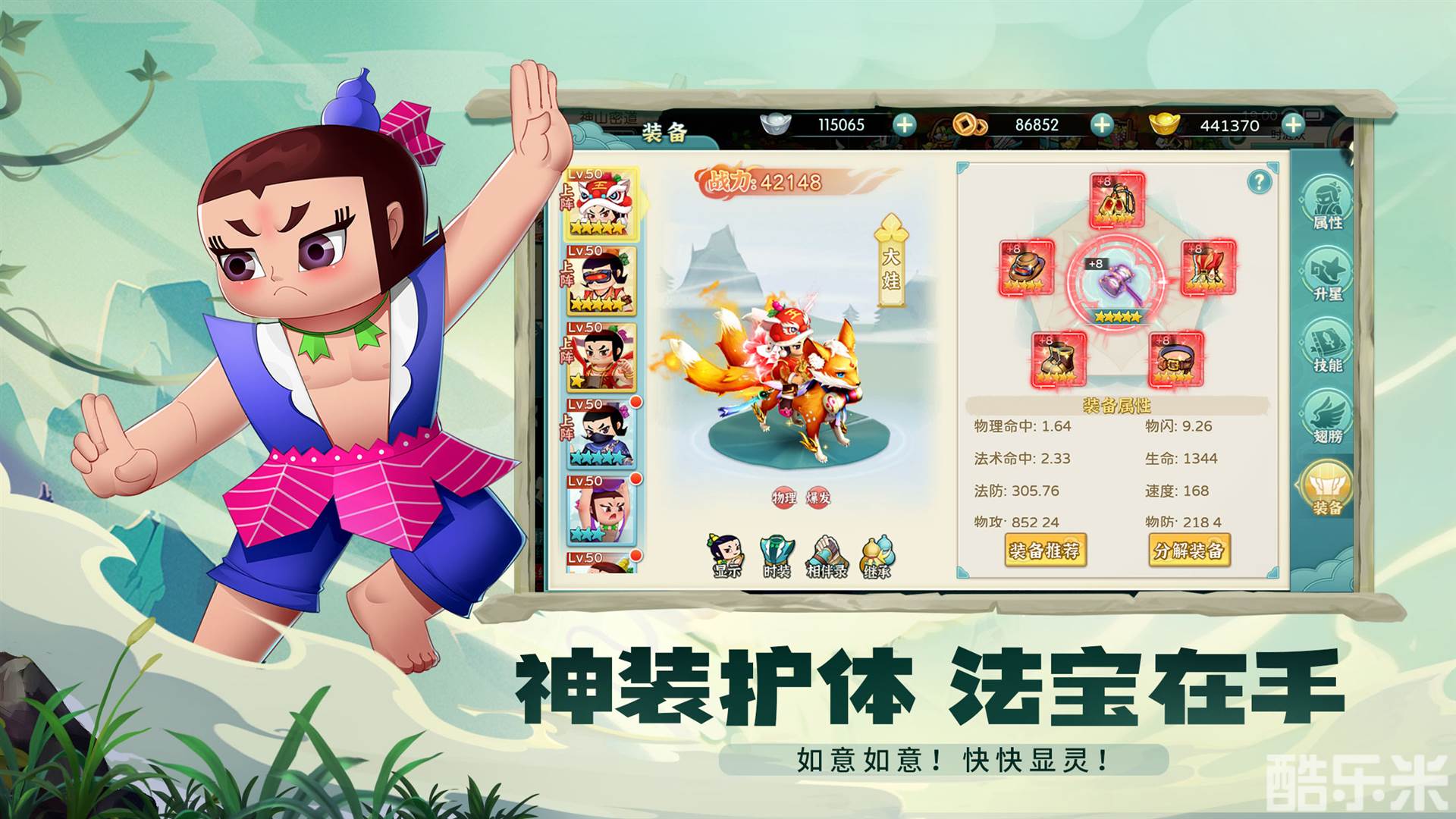 除了排兵布阵的策略外,得心应手的兵器也将是致胜的关键。在《葫芦娃·奇幻世界》中,大量的神装、法宝任你搭配,神装搭配灵活,不论是散搭追求极限属性,还是成套发挥套装效果,都将会影响阵容玩法发挥,战斗趣味性策略性拉满。而法宝系统独立于战斗回合外,突施冷箭释放法宝改天换地更是可以让战局瞬息万变,随时扭转战斗,体验真正紧张刺激的策略战斗。