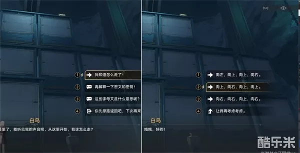 5、依次选择选项“我知道怎么走了”和“向上,向右,向上,向上”。