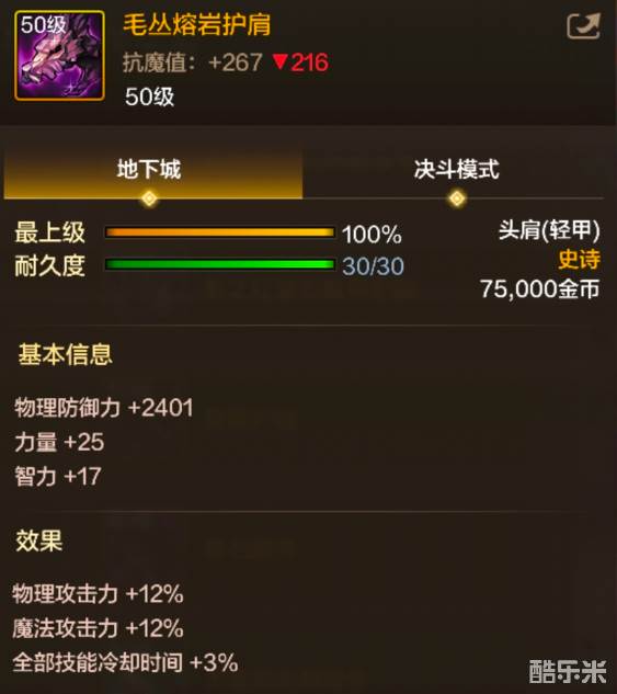 以上就是酷乐米小编整理带来的《地下城与勇士:起源》毛丛熔岩护肩装备图鉴