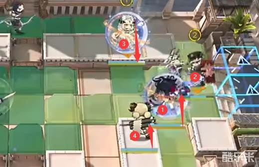 如图所示位置部署煌(向上)→ 塞雷亚 → 夜莺(向下)→ 小火龙(向上)