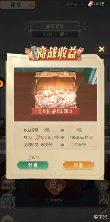 商战收益是后期钞票的主要来源,没有之一。因为商战的钞票产率为当前收入x收益等级加成。这个值可以无限上升,后期商战钞票产率是赚速的好几倍(这也意味着小时卡分钟卡的效果降低,因为只能加速获得商铺的钞票,而真正大头的商战钞票并不能加速),而钞票是我们重要货币之一,因此升级商战收益等级对商战系统也十分重要。