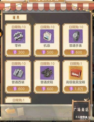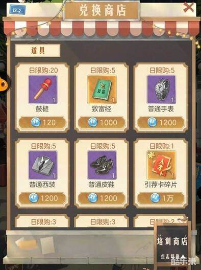 魅力道具、经验卡、人参、普通西装、普通皮鞋、普通手表、火车票(必买)