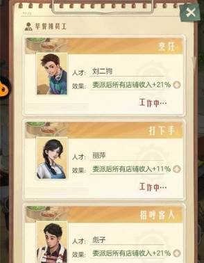 2、商铺收益:优先解锁和升级店铺,这样可以有效提升赚钱速度,将擅长培养的人才放在商铺中能够快速提升总收入。