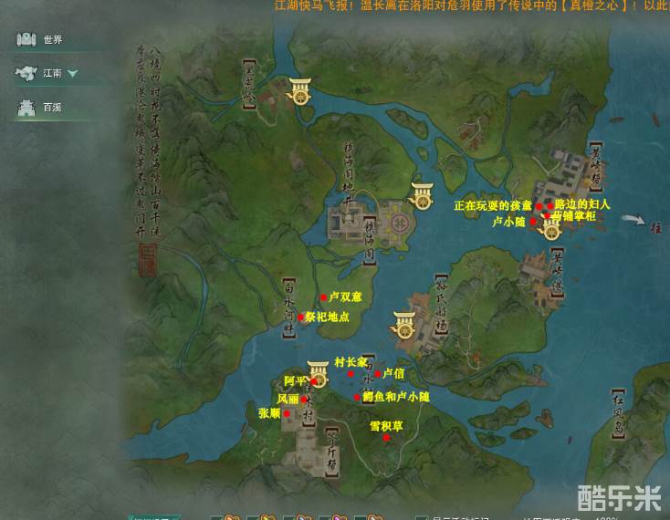 1. 奇遇触发后,去百溪右上角传送点找NPC卢小随对话