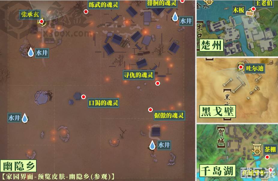 5.回任务地图对话NPC【练武的魂灵】(家园界面-预览皮肤-幽隐乡-参观);