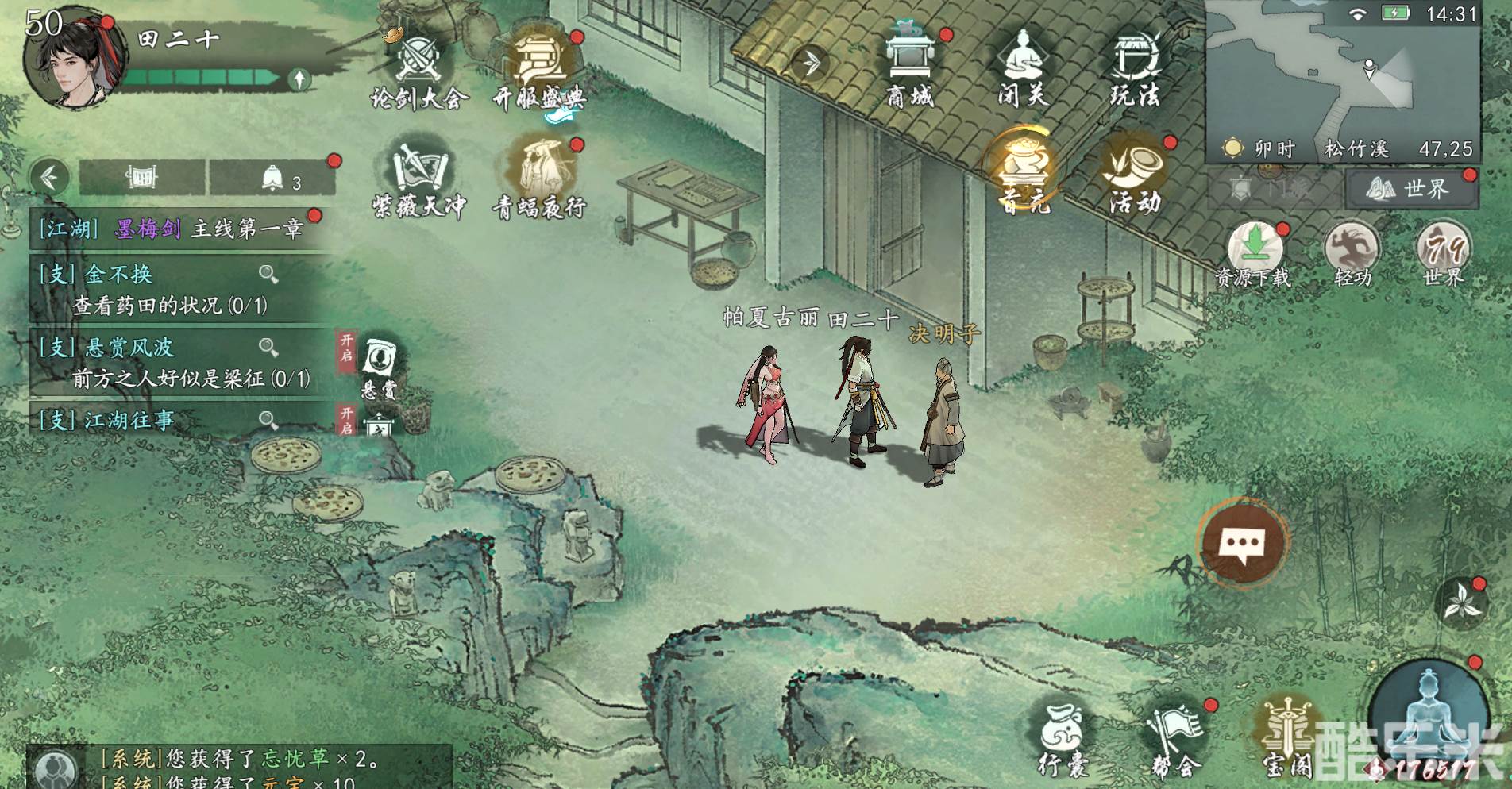 墨剑江湖是一款浸润着东方武侠韵味的角色扮演游戏,游戏中玩家将扮演一位初出茅庐的侠士,踏上寻找武林秘籍、修炼绝世武功的征途,书写属于自己的江湖传奇。游戏地图探索任务很多,松竹溪地图中任务-金不换怎么做呢?下面酷乐米小编给大家带来了《墨剑江湖》金不换任务攻略,还没有完成探索的一起来看看吧。