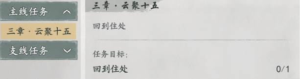 触发条件:需要完成主线任务:三章·云聚十五(回到住处)