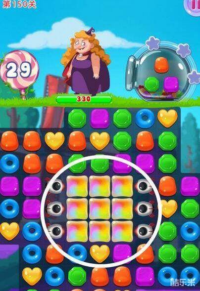 小编心得:首先彩虹糖是块硬骨头,比较难啃,只要把这片区域打开,就会豁然开朗。女巫扔出的小怪兽在某些时候也会造成不少麻烦,明明下一步已经设计好,会让它搞得面目全非,最好在消除目标糖果的同时,将小怪兽一举攻破。关键时刻使用加成道具也是不错的选择哦~~