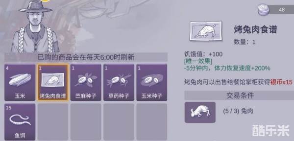 4、食用烤兔子可以恢复400%体力,让玩家能更好的在游戏里探索,