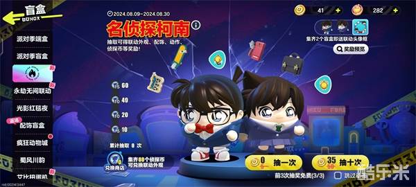 1、玩家花费许愿币可以抽取柯南和小兰的皮肤,前三次抽奖免费