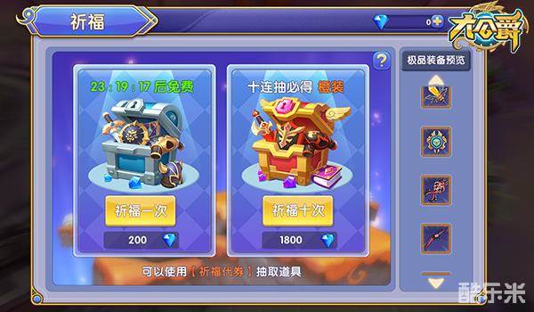 想要祈福有三种方法,一是24小时可以免费进行祈福一次,在祈福过后重新计时。二是通过完成章节任务,或者是使用红钻在商城购买,都可以获得祈福券进行祈福,偶尔运营会有活动也可以获取祈福券。三是通过钻石可以进行抽取。