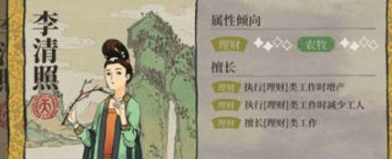 李清照,理财能手。可用来刷书局(仅次于沈周),也可挂机账铜币。