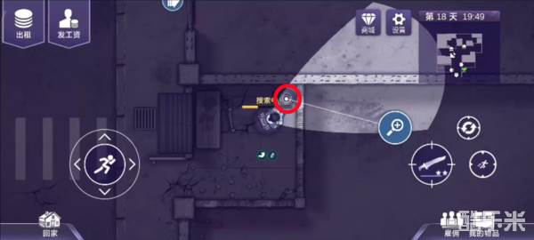 3、在房间的右上角位置,点击搜索即可找到检修室钥匙。