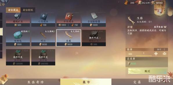 2、前往江湖身份,再点击身份商品,使用5000交子购买生筋。