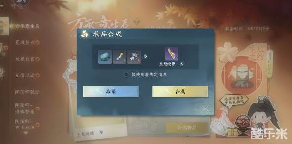 逆水寒手游中方承意生辰礼活动第四日需要玩家们收集彩缕游丝、流光花以及布料包,只需前往东极海谪仙岛、汴京和宋辽边境获取即可制作生辰绶带.方,下面酷乐米小编就带来具体的《逆水寒手游》方承意生辰礼活动第四日攻略,感兴趣的伙伴们一起来看看吧。