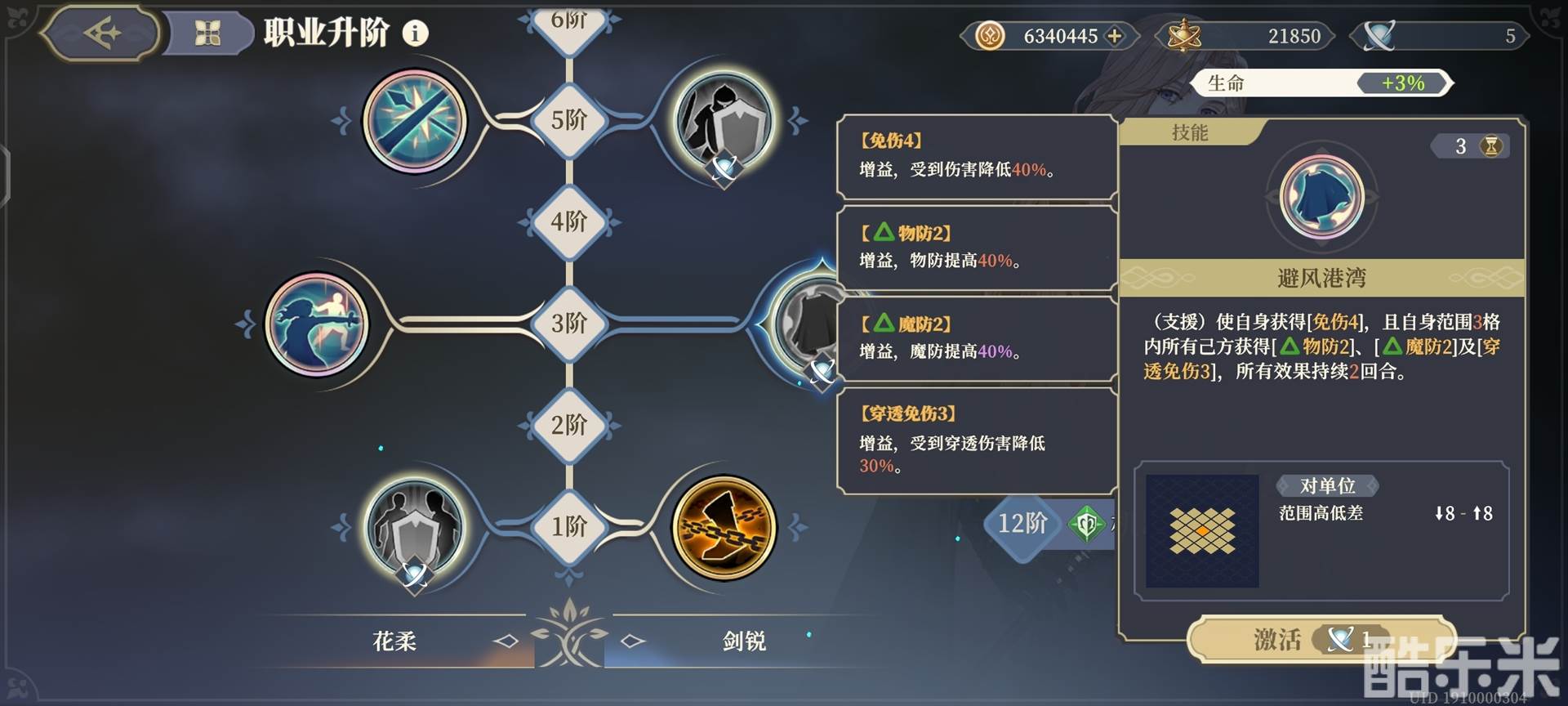 避风港湾给自身提供免伤4,三格内的所有己方获得双防和穿透免伤3,一般情况下用不到,除非拿莉拉当做主力承伤,正常莉拉还是一直保持警戒状态比较好