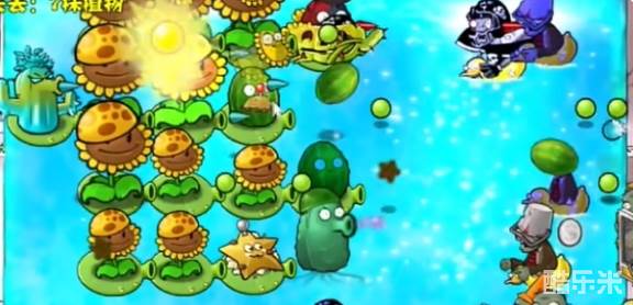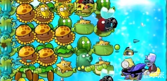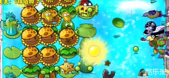 4、在上方继续补充向日葵,在外侧种植一个海兵菇。