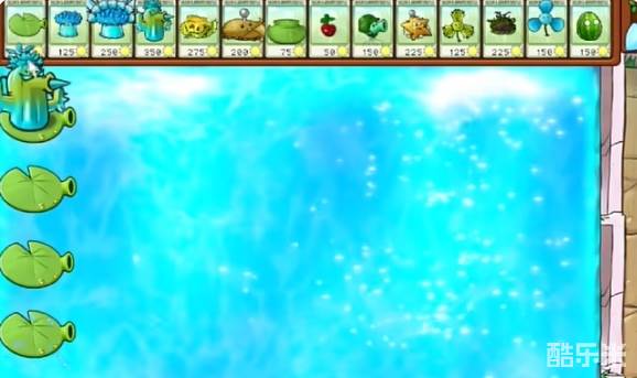 2、先在最里侧种植一列豌豆荷叶和一列寒冰仙人掌。