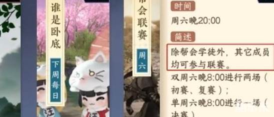 在帮会联赛结束以后,玩家就能够在周六晚上去体验到帮会拍卖了,开启的时间是在晚上的21.00,而到时候只要是符合条件的帮派成员都能够进入其中来参与。