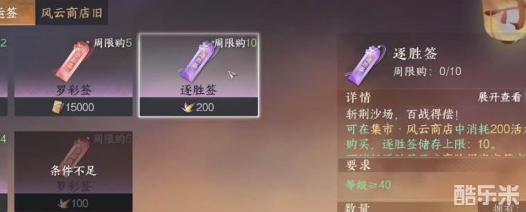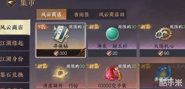 风云令的用户就是在风云商店中购买多个道具。在风云商店中可以购买全部已经解锁的道具,其中寻侠贴合可以多买些,如果有剩余可以购买下交子袋。