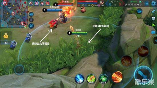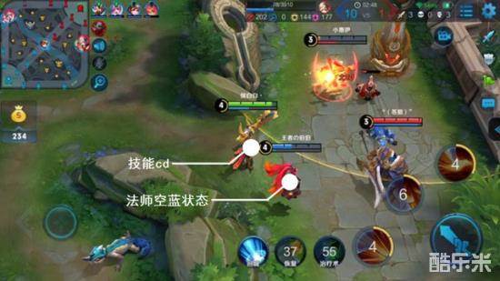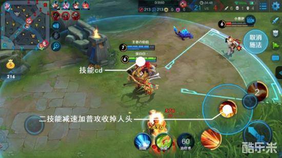 双方对战时,技能冷却时间是敌人逃跑的重要机会,若是友军无技能释放,自己就要立马跟上,在本局游戏中,安琪拉与老夫子互怼并将其打成残血后,等待技能冷却的时间只能转而普攻小兵,这时候小白正好赶到,只一个带减速的二技能再加一两次普通攻击,就将人头收入怀中。