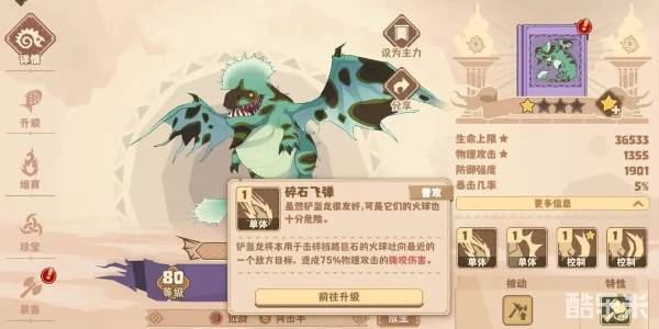 驯龙高手旅程铲盔龙怎么样?驯龙高手旅程铲盔龙是游戏中的一头A级龙下面为大家带来关于驯龙高手旅程铲盔龙详细的技能介绍,以及阵容搭配攻略,感兴趣的小伙伴可以来看看下方酷乐米小编的攻略。