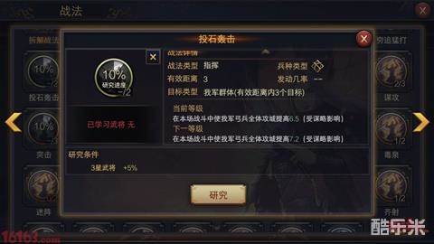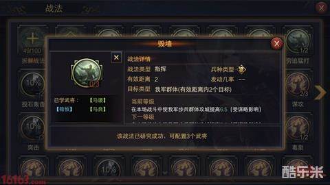 其中,冲车可供5个武将学习,云梯以及投石轰击可供2个武将学习,毁墙可供3个武将学习,至于技能详细的描述,依凡就不一一说明了。