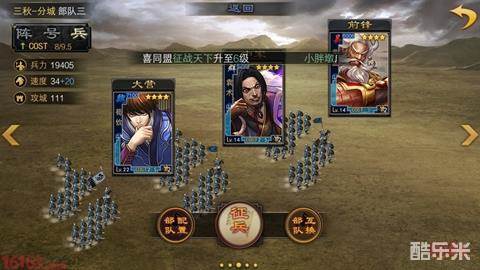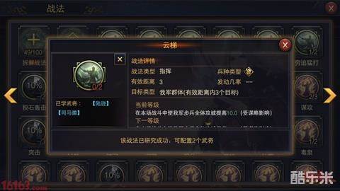 从武将的界面中,可以看到我给三个武将分别学习了2个冲车以及1个云梯。