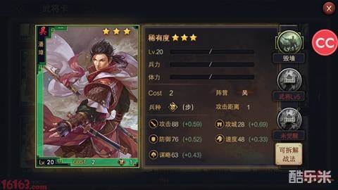 从上图可以看到,祢衡自身携带着云梯技能,朱治自身携带着投石轰击,潘璋自身携带毁墙。