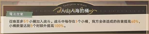 与之对应的,小桶也会获得全新的攻击技能和天赋技能。你可操控小桶进行攻击。他也会继承魔法师的部分属性和增益效果。攻击敌人或受到敌人攻击时,还会为魔法师恢复能量哦!