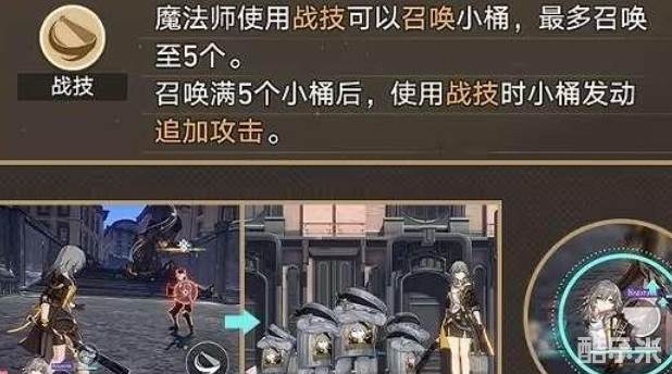在战斗中,魔法师的战技和终结技将获得全新战斗效果,可指挥小桶进行战斗。