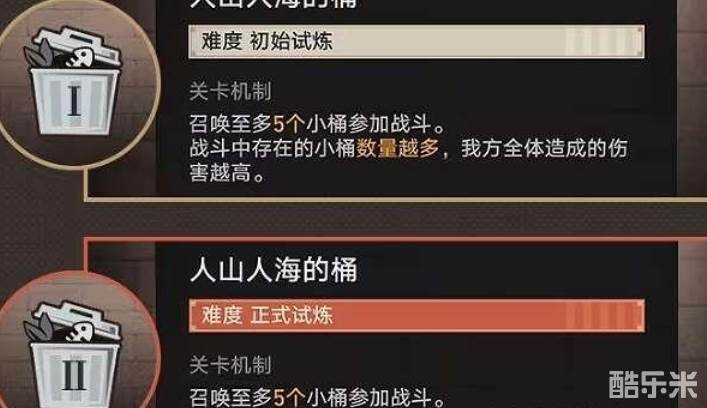 每一个挑战关拥有两种难度初始试炼与正式试炼完成初始试炼挑战后,将解锁正式试炼难度。