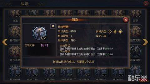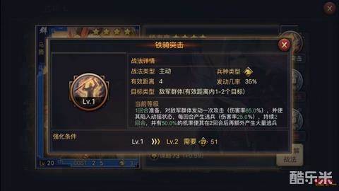 总得来说这样的一支纯菜刀向的四星骑兵队跟目前主流的五星部队是没的打的,因为现在活跃于前线战场的玩家的主力队基本都是人手一个战必反计,或者是避其锋芒、大赏三军、神兵天降之类的听着名字就很厉害的技能(各种减伤+增伤效果),适合跟同级别四星队或者未成型五星部队交手或者是看到对面被打残了的主力上去补个刀。