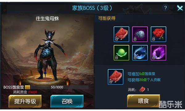 3、所有家族成员可以通过喂食兽粮增加BOSS的饱食度。