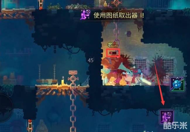 2、将投刀者怪物打到残血,对其使用图纸取出器。