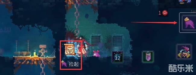 3、走到掉落的图纸旁边,点击捡起按钮,如图所示。