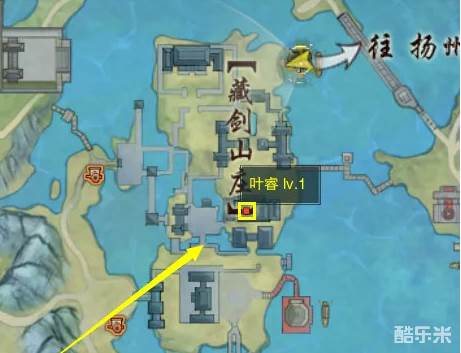 3.前往藏剑山庄的藏剑山庄下括号处找到NPC “叶睿”,随后返回战乱洛阳找 “赵云睿”。