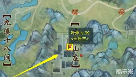 4.再次前往藏剑山庄找到NPC “叶睿”,前往虎跑山庄的山字左侧找到NPC “叶炜”