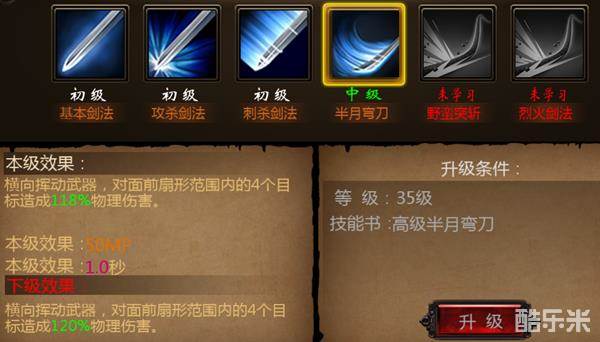 技能分初级、中级、高级、专家级、宗师级共5个等级。未学习的技能需要使用初级技能书技能进行学习,升级则需要消耗其他等级的技能书。
