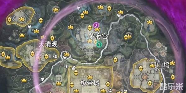1、进入游戏后打开地图,然后根据提示前往紫府宫(如下图所示)