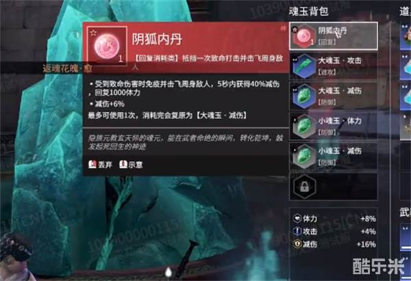 3、然后将巨石的七处封印全部解除,即可拾取红色品质的魂玉阴狐内丹