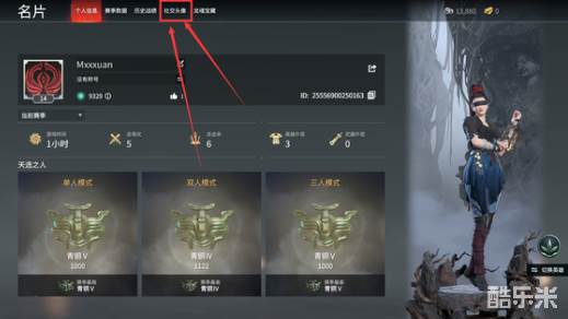 2、进入个人信息页面后,在上方导航栏处点击社交头像功能