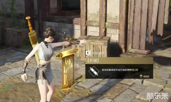 2、抵达祈福地点后,玩家可以找到一口钟,使用武器或徒手敲击3次钟就可以完成祈福任务。