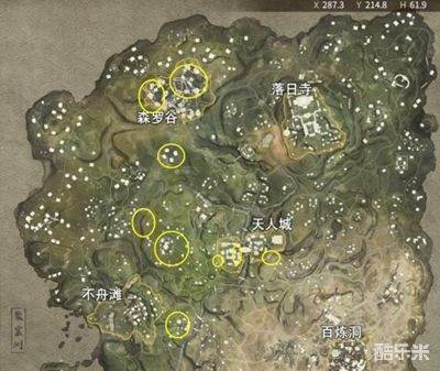 2、不舟滩的右边有1个刷新点,在不舟滩和天人城的中间有2个刷新点。
