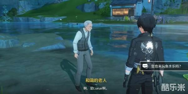 4、这时我们要和老者交谈,完成对话后在旁边的河豚处开始挑战