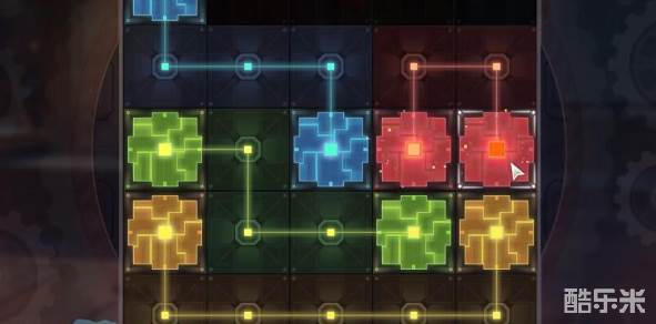 2、进入解谜,需要将对应颜色的方块进行连接,切连线不重叠,正确解谜如下图。