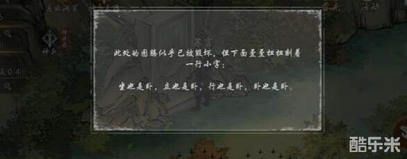 3、在图腾的下面就可以看到一行小字:坐也是卧,立也是卧,行也是卧,卧也是卧。
