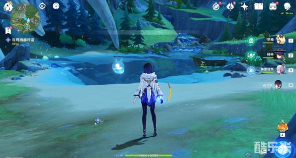 3、玩家潜入水中后,沿着水下的道路一直向前游去。看到了两个地下锚点。海露花的存在,要用水元素激活才能采摘这些美丽的花朵。