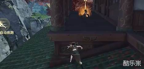 3、接着使用钩锁前往二楼水车上,到达后可以搜索到金堆